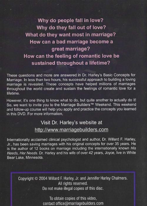 Dr. Harley's Basic Concepts For Marriage DVD VIDEO learn how to stay in love!