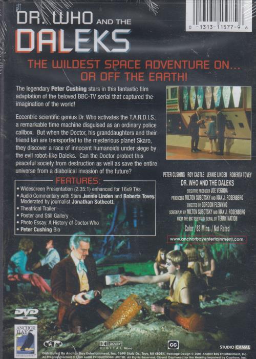 Dr. Who And The Daleks DVD VIDEO MOVIE 1965 Peter Cushing ANCHOR BAY NEW SEALED