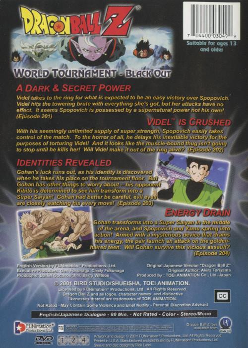 Dragon Ball Z: World Tournament: Blackout DVD VIDEO TV SHOW fighting anime 2001