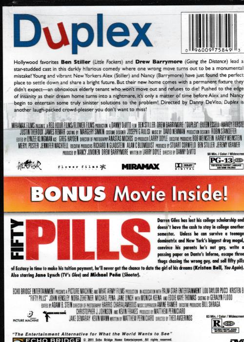 Duplex / Fifty Pills DVD VIDEO MOVIES Ben Stiller Drew Barrymore Kristen Bell