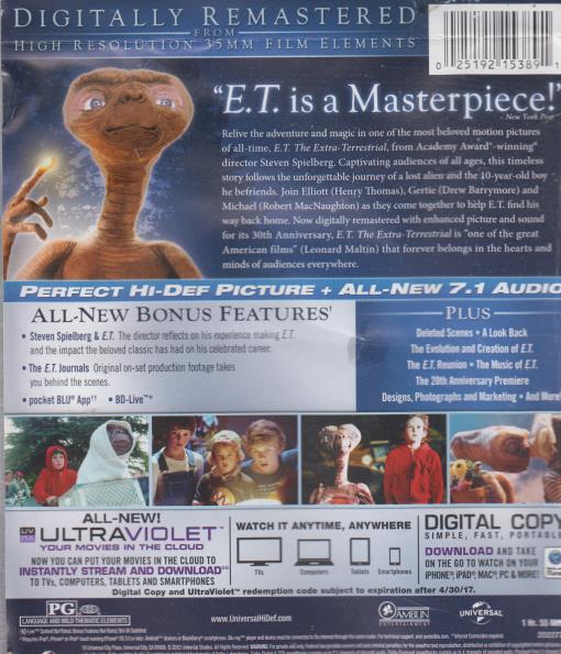 Now digitally remastered with enhanced picture and sound for its 30th Anniversary, E.T. The Extra-Terrestrial is "one of the great American films." (Leonard Maltin) that forever belongs in the hearts and minds of audiences everywhere.