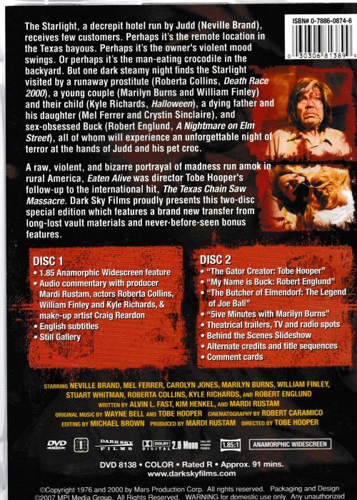 Eaten Alive Special 2-Disc Set DVD VIDEO MOVIE Tobe Hooper 1976 horror murder