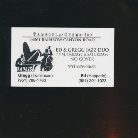 ED HEPPERLE & GREGG TOMLINSON (& RICK RAHN): A NIGHT OF JAZZ AT TEMECULA CREEK INN W/ FRONT ARTWORK & BUSINESS CARD