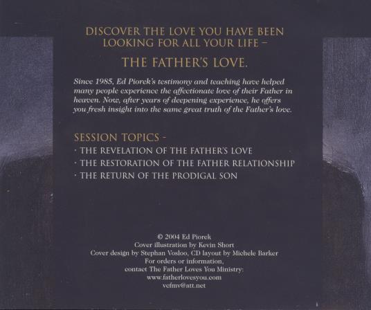 DISCOVER THE LOVE YOU HAVE BEEN LOOKING FOR ALL YOUR LIFE - THE FATHER'S LOVE. Since 1985, Ed Piorek's testimony and teaching have helped many people experience the affectionate love of their Father in heaven. Now, after years of deepening experience, he offers you fresh insight into the same great truth of the Father's love.