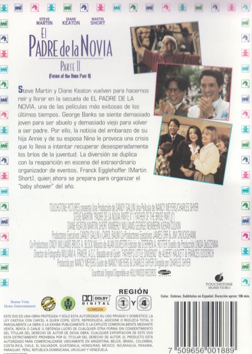 El Padre De La Novia Parte II DVD VIDEO MOVIE Steve Martin Diane Keaton SPANISH
