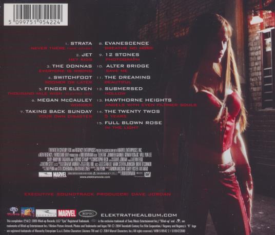 Executive Soundtrack Producer: Dave Jordan. Label credits: Wind-up Records / Epic. Contains various artists featured on the Elektra motion picture soundtrack.