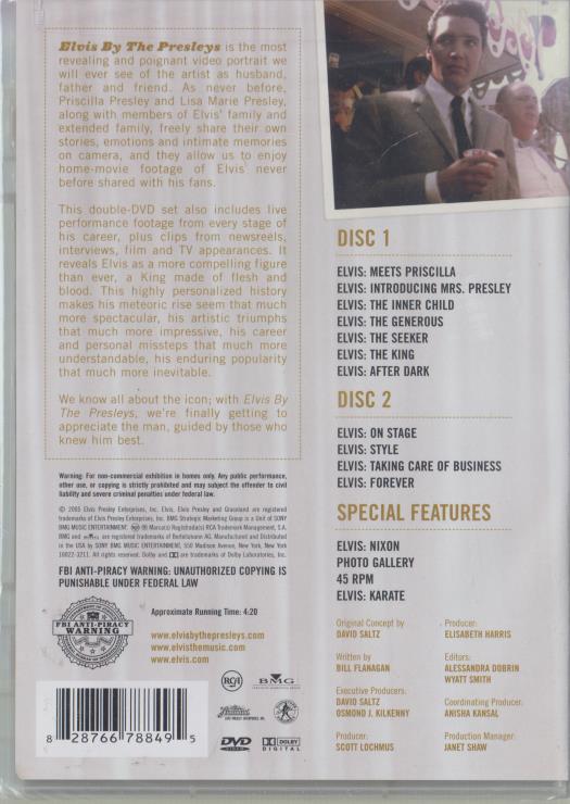 This double-DVD set also includes live performance footage from every stage of his career, plus rare newsreel, film and TV appearances. It presents Elvis as a more compelling, human figure, highly personalized and much more understandable. With Elvis By The Presleys we're finally getting to know the man, guided by those who knew him best.