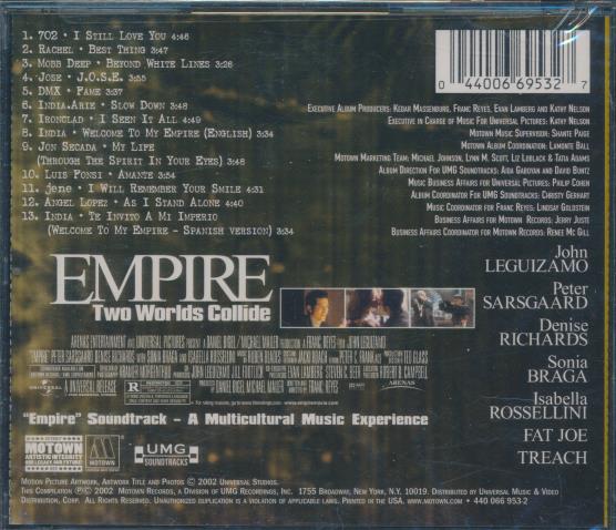 Empire: Two Worlds Collide is the original motion picture soundtrack featuring a diverse roster of contemporary R&B, hip-hop and Latin artists. The compilation blends soulful ballads, urban beats and Latin pop influences to reflect the film's multicultural themes. Artists on the album range from established urban acts to Latin pop stars, providing a multi-genre listening experience. The soundtrack was released by Motown as part of a UMG Soundtracks release in 2002.