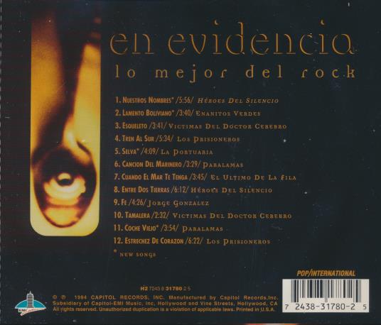 En Evidencia: Lo Mejor Del Rock MUSIC AUDIO CD 90s latin alt rock 1994 Capitol