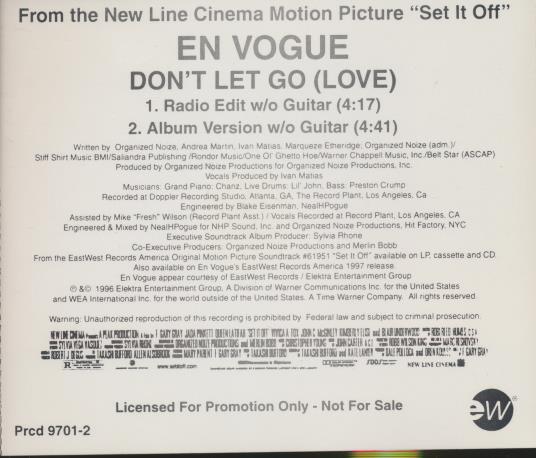 EN VOGUE: DON'T LET GO (LOVE) 2-TRACK PROMO W/ BACK ARTWORK