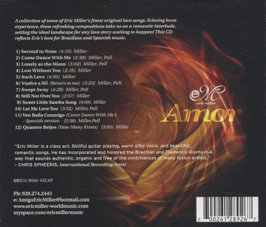 Eric Miller: Amor MUSIC AUDIO CD brazilian jazz flamenco spanish guitar romance!