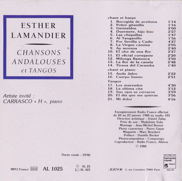 Esther Lamandier: Chansons Andalouses Et Tangos MUSIC AUDIO CD tango flamenco