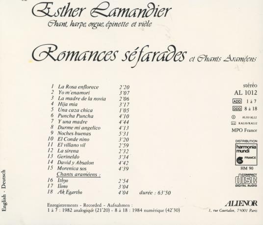 Esther Lamandier: Romances - Romances séfarades et Chants Araméens