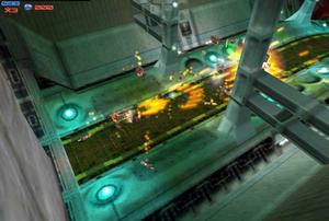 Not so different from Contra: The Legacy of War, this game provides a third-person view and allows two players to team up and blast the enemy together. Level environments are sci-fi based alien worlds and contain occassional cut scenes. Players begin the game with a pulse cannon but can find up to 17 other weapons throughout the 20+ levels, some of which include: a flamethrower, shotgun, multiple warhead rockets, heatseeking missles, and laser guided missles.