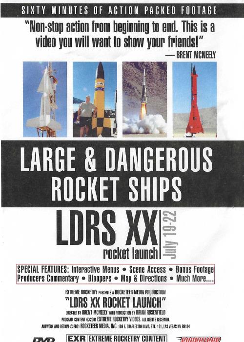 SIXTY MINUTES OF ACTION PACKED FOOTAGE "Non-stop action from beginning to end. This is a video you will want to show your friends!" — BRENT MCNEELY LARGE & DANGEROUS ROCKET SHIPS LIES XX rocket launch SPECIAL FEATURES: Interactive Menus • Scene Access • Bonus Footage Producers Commentary • Bloopers • Map & Directions • Much More.... EXTREME ROCKETRY PRESENTS A ROCKETEER MEDIA PRODUCTION