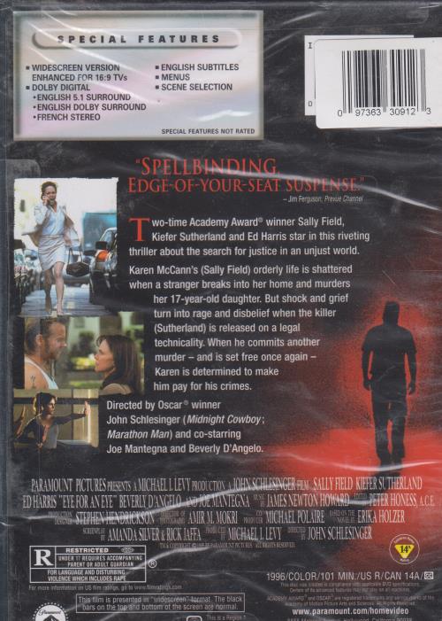 Eye For An Eye DVD VIDEO MOVIE Sally Field Kiefer Sutherland Ed Harris SEALED