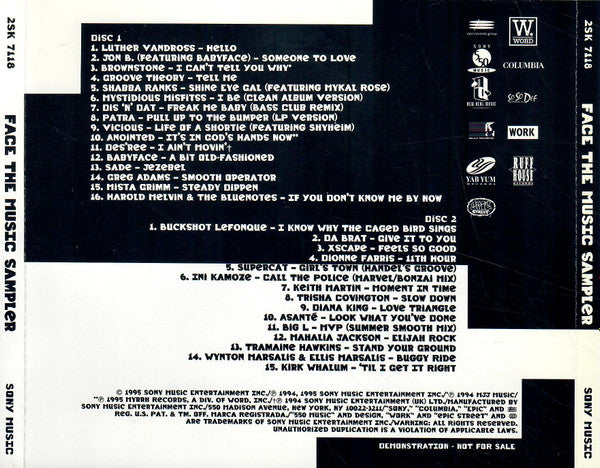 Face The Music Sampler PROMO 2-Disc MUSIC AUDIO CD hip hop funk soul 1995 Sony