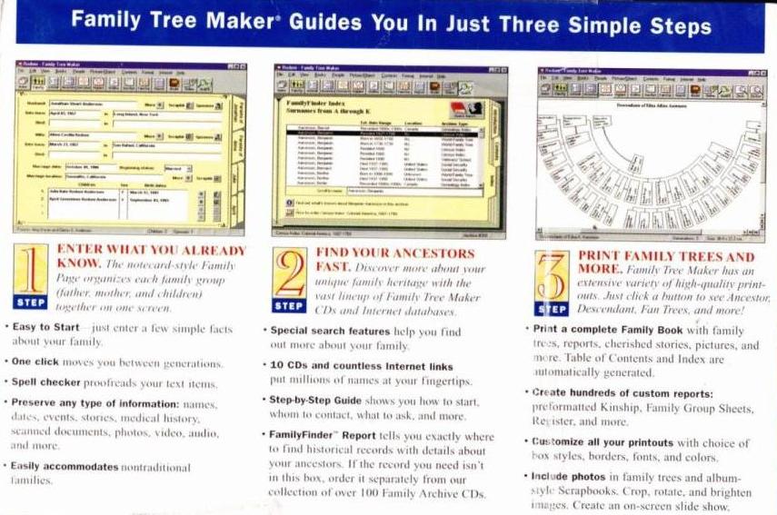 Family Tree Maker 5.0 PC CD research older names genealogy data reference tool