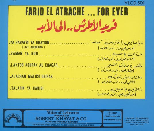 Farid El Atrache For Ever MUSIC AUDIO CD Syrian musical master 1987 Lebanon RARE