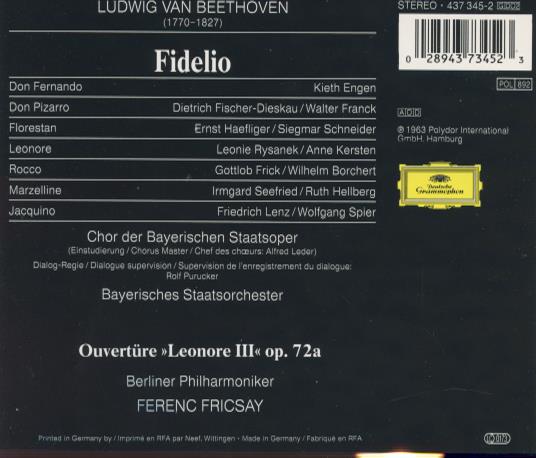Ludwig van Beethoven - Ferenc Fricsay, Leonie Rysanek, Irmgard Seefried, Ernst Haefliger, Dietrich Fischer-Dieskau, Kieth Engen, Gottlob Frick, Friedrich Lenz, Chor Der Bayerischen Staatsoper, Bayerisches Staatsorchester: Fidelio