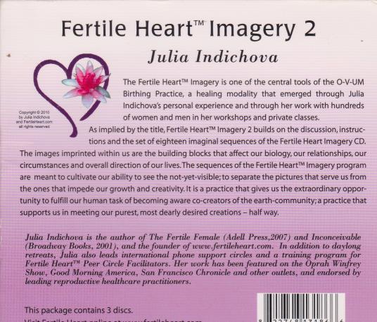 The Fertile HeartTM Imagery is one of the central tools of the O-V-UM Birthing Practice, a healing modality that emerged through Julia Indichova's personal experience and through her work with hundreds Julia Indichova is the author of The Fertile Female (Adell Press,2007) and Inconceivable (Broadway Books, 2001