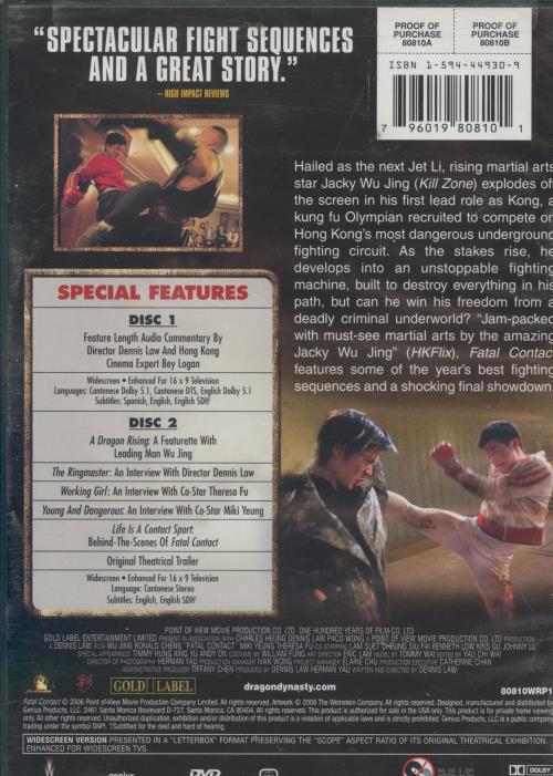 Hailed as the next Jet Li, rising martial arts star Jacky Wu Jing (Kill Zone) explodes off the screen in his first lead role as Kong, a kung fu Olympian recruited to compete on Hong Kong's most dangerous underground fighting circuit. As the stakes rise, he develops into an unstoppable fighting machine, built to destroy everything in his path, but can he win his freedom from a deadly criminal underworld? Jam-packed with must-see martial arts by the amazing Jacky Wu Jing (HKFIix), Fatal Contact features some of the year's best fighting sequences and a shocking final showdown.