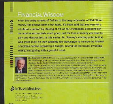 From the dusty streets of Galilee to the busy sidewalks of Wall Street, money has always been a hot topic. It's been said that you can tell a lot about a person by looking at his or her checkbook. Finances can be used to accomplish much good, but the love of money can lead to pain and destruction. In this series, Dr. Stanley's starting point is that God owns it all; he then expands his discussion to include the biblical principles behind preparing a budget, saving for the future, investing wisely, and giving with a grateful heart.