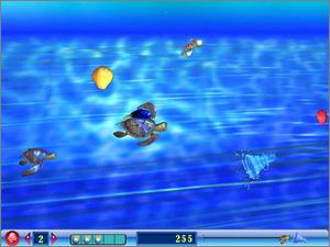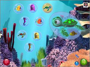 Throughout the adventure, players are introduced to characters from the film who help Marlin and Nemo accomplish tasks. During Marlin's story, players must escape from Bruce the Shark, recover the diver's mask from a sunken submarine, avoid an anglerfish, hop across a maze of jellyfish, and hitch a ride on the current to Sydney Harbor. Meanwhile, mini-games and puzzles in Nemo's segment include using pebbles to jam the aquarium's filter, catching bubbles before they reach the top of the tank, maneuvering through a maze of Tiki heads, helping Jacques get his key chain unstuck, and escaping from a crab-infested sewer pipe. Once father and son are reunited, they must save Dory and other fish from a fisherman's net.