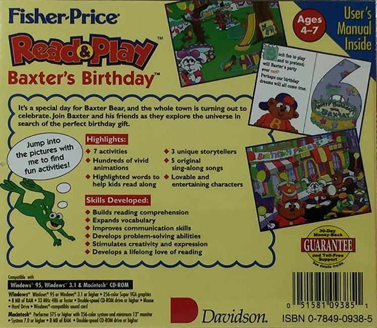 Fisher Price Read & Play: Baxter's Birthday PC MAC CD kids build reading skills!