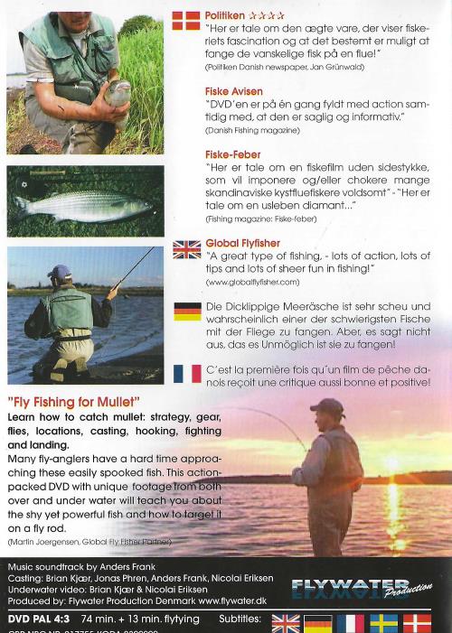 A great type of fishing, - lots of action, lots of tips and lots of sheer fun in fishing!" "Fly Fishing for Mullet" Learn how to catch mullet: strategy, gear, flies, locations, casting, hooking, fighting and landing. Many fly-anglers have a hard time approa-ching these easily spooked fish. This action-packed DVD with unique footage Trorn over and under water will teach you about the shy yet powerful fish and how to target it __ on a fly rod. (Martin Joergensen, Global Fly Fisher Partner)