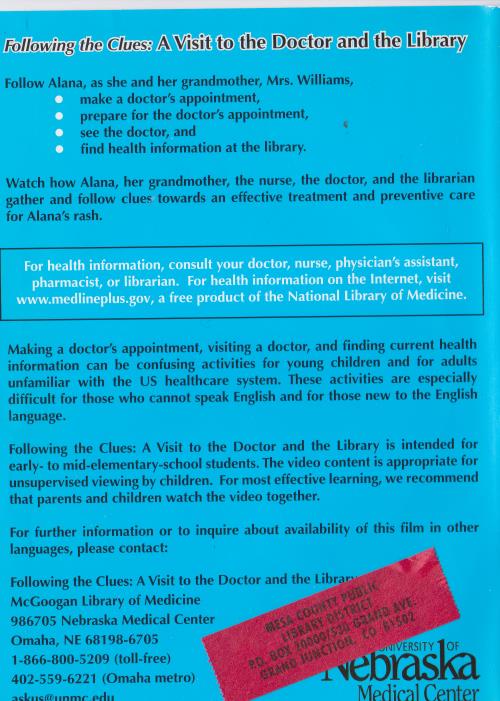 Making a doctor's appointment, visiting a doctor, and finding current health information can be confusing activities for young children and for adults unfamiliar with the US healthcare system. These activities are especial! Ilidifficult for those who cannot speak English and for those new to the English language. Itollowing the Clues: A Visit to the Doctor and the Library is intended for arly- to mid-elementary-school students. The video content is appropriate for unsupervised viewing by children. For most effective learning, we recommend that parents and children watch the video together.