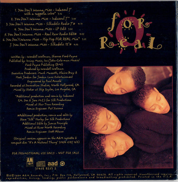 For Real You Don't Wanna Miss PROMO MUSIC AUDIO CD R&B hip hop soul remixes 1994
