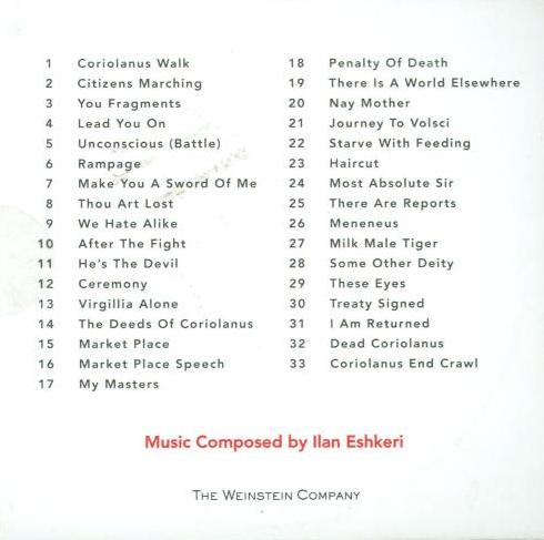 For Your Consideration: Coriolanus: Best Original Score 2011 FYC PROMO Music CD