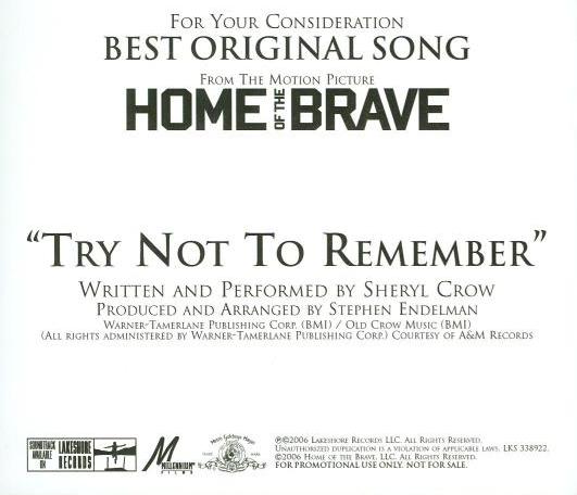 For Your Consideration: Home Of The Brave: Best Original Song: Try Not To Remember Promo w/ Artwork