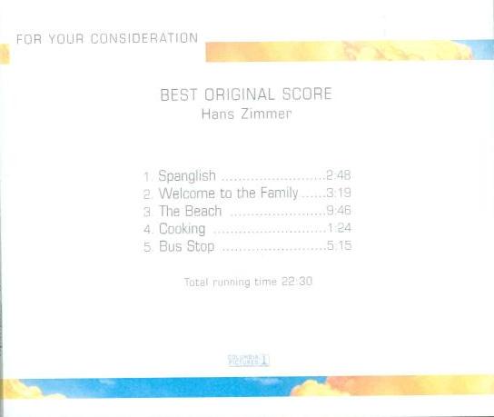 For Your Consideration Spanglish Best Original Score: Hans Zimmer PROMO MUSIC CD