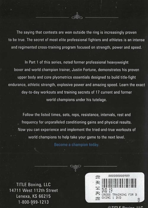 The saying that contests are won outside the ring is increasingly proven to be true. The secret of most elite professional fighters and athletes is an intense and regimented cross-training program focused on strength, power and speed. In Part 1 of this series, noted former professional heavyweight boxer and world champion trainer, Justin Fortune, demonstrates his proven upper body and core plyometrics essentials designed to build title-fight endurance, athletic strength, explosive power and amazing speed. Learn the exact day-to-day workouts and training secrets of 17 current and former world champions under his tutelage. Follow the listed times, sets, reps, resistance, intervals, rest and frequency for unparalleled conditioning gains and physical results. Now you can experience and implement the tried-and-true workouts of world champions to help take your game to the next level. Become a champion today.