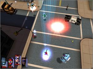Freedom Force is a superhero adventure with squadron tactics and mission-based play. The game features fantastic heroes who develop over time, becoming stronger and gaining new powers as the game progresses. Players guide their hero characters through a classic storyline of "Good vs. Evil" that plays out in comic book-styled settings across the three-dimensional Patriot City game world. Interactive, deformable environments allow the heroes to perform classic comic book actions like smashing through brick walls or tossing large vehicles around in the city streets. Set in the early '60s, Freedom Force pays stylistic homage to the Silver Age of comics.