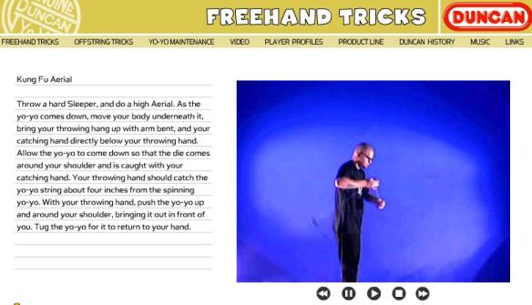 Features Freehand Tricks, Offstring Tricks, Yo-Yo Maintenence, Video, Player Profiles, Product Line, Duncan History, & Music