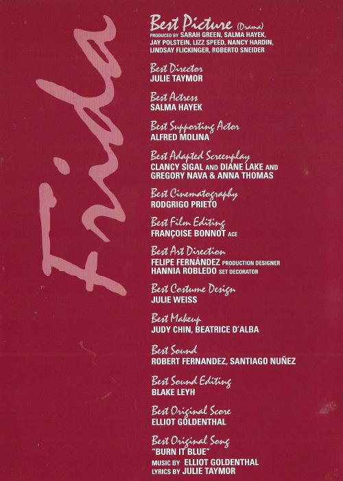 Frida FYC DVD VIDEO MOVIE artist controversial life FOR YOUR CONSIDERATION 2002