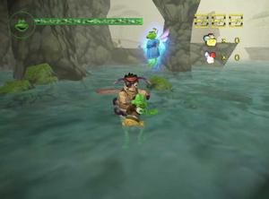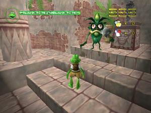 Starting out, Frogger has the ability to spit wads of goo out of his mouth, and glide for short distances by puffing up his throat. However, treasure in the form of magic stones can be collected in the game's many stages, which in turn can be traded for new skills and abilities. Frogger can also pick up coins and gems for use in purchasing hints, tips, and character bios.