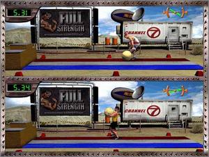 After selecting your Strongman, you can enter either the one or two player mode. From here, select whether you wish to practice an event or partake in a tournament of testicular fortitude. The different events portrayed in Full Strength Strongman Competition include the Truck Pull, Showgirl Lift, Tire Toss, Farmer's Walk, Keg Toss, Atlas Carry, Super Yoke and the Car Roll. In a tournament, you will go from one event to the next in order. After each subsequent event, you will be presented with your individual score and rank, as well as a leader board showing who the strongest man is, up to that point.