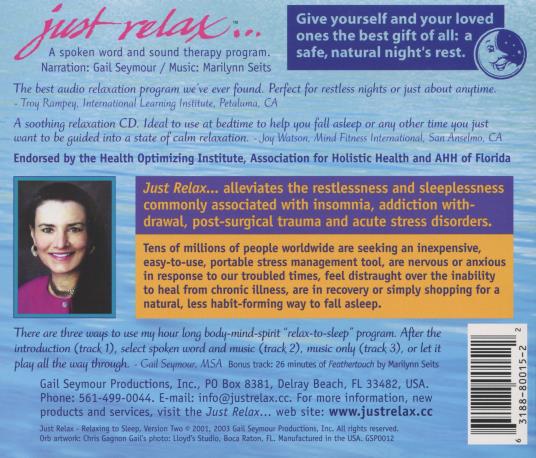 Gail Seymour: Just Relax: Relaxing To Sleep AUDIO CD guided meditation sleeping!