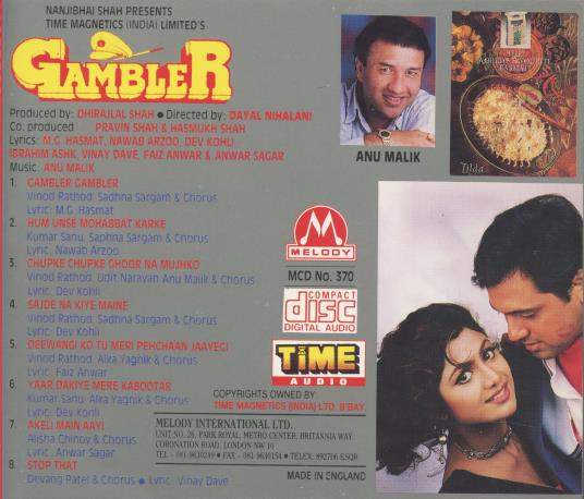 Gambler: Soundtrack MUSIC AUDIO CD bollywood film score 1994 India Melody Malik
