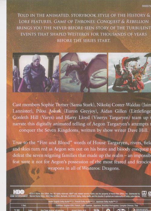 Game Of Thrones: Conquest & Rebellion DVD VIDEO ANIMATION seven kingdoms history