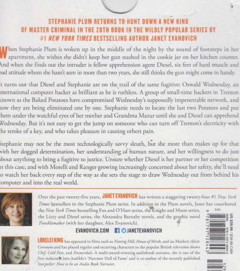 It turns out that Diesel and Stephanie are on the trail of the same fugitive: Oswald Wednesday, an international computer hacker as brilliant as he is ruthless. A group of small-time hackers in Trenton known as the Baked Potatoes have compromised Wednesday's supposedly impenetrable network, and now they are being eliminated one by one. Stephanie needs to locate the last two Potatoes and put them under the watchful eyes of her mother and Grandma Mazur until she and Diesel can apprehend Wednesday. But it's not easy to get the jump on someone who can turn off Trenton's electricity with the stroke of a key, and who takes pleasure in causing others pain.