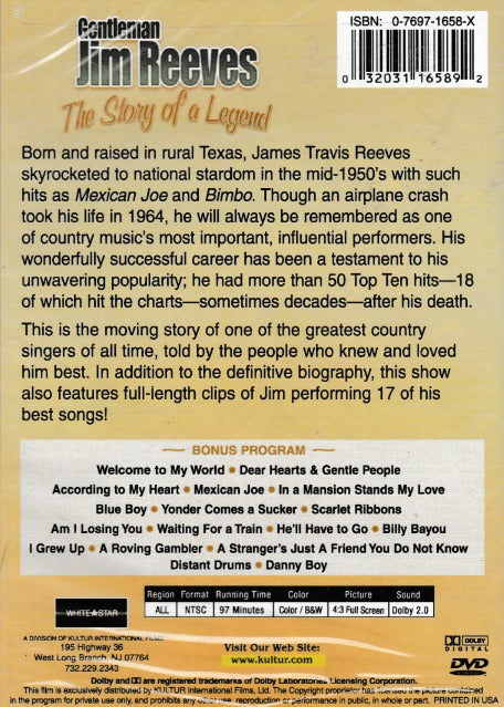 Produced by Kultur International Films, Ltd., this documentary offers a comprehensive look at the life and legacy of Jim Reeves. Running at 97 minutes in color, this film features a 4:3 Full Screen aspect ratio and Dolby 2.0 sound quality. Dive into the world of Jim Reeves with this captivating film.