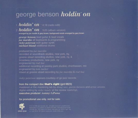 George Benson: Holdin' On GR5P-5249 PROMO w/ Artwork MUSIC AUDIO CD Edit Album