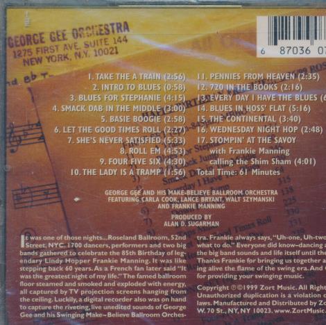 George Gee and His Make-Believe Ballroom Orchestra revive the classic big-band swing sound on this live recording. Captured live at New York City's Roseland Ballroom, the album celebrates Lindy Hop legend Frankie Manning and the dance culture that surrounded swing-era music. The band specializes in energetic, danceable arrangements and showcases both ensemble playing and featured vocalists. Guest performances and dancers give the recording an authentic ballroom atmosphere.