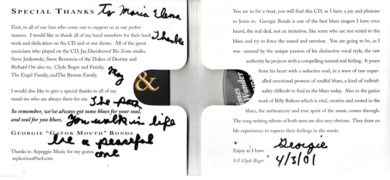 Georgie Bonds & The Blueskeepers: Sometimes I Wonder w/ Autographed Artwork CD