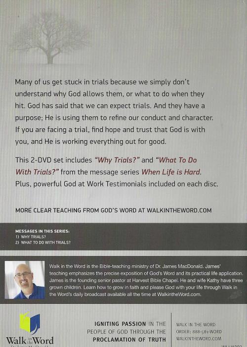 GET GOD'S B WHEN LIFE IS HARD This 2-DVD set includes "Why Trials?" and "What To Do With Trials?" from the message series When Life is Hard. Plus, powerful God at Work Testimonials included on each disc. MORE CLEAR TEACHING FROM GOD'S WORD MESSAGES IN THIS SERIES: 1) WHY TRIALS? 2) WHAT TO DO WITH TRIALS? Walk in the Word is the Bible-teaching ministry of Dr. James MacDonald. James' teaching emphasizes the precise exposition of God's Word and its practical life application. James is the founding senior pastor at Harvest Bible Chapel. He and wife Kathy have three grown children.